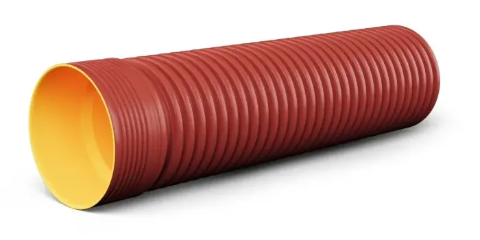 Полипропиленовые гофрированные трубы с двойной стенкой для наружных систем безнапорной канализации ГОСТ Р54475-2011. Канализационные трубы наружные имеют двухслойную структуру, большую кольцевую жесткость. Внешний слой – гофрированный, выполняет защитную функцию от воздействия окружающей среды. Внутренний слой имеет гладкую поверхность, которая обеспечивает максимальную пропускную способность. Трубы поставляются кратно отрезкам 6 метров и в комплекте с уплотнительным кольцом. Диаметры от 110 до 1000 мм. Кольцевая жесткость данных трубы SN8, SN10, SN16, SN24.