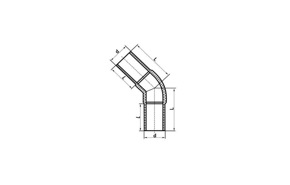 | Модель | Отвод 45 градусов литой удлиненный Вода ПЭ100 SDR 17 90 мм |